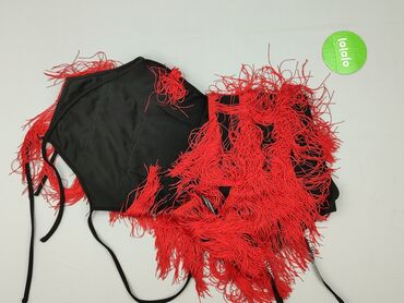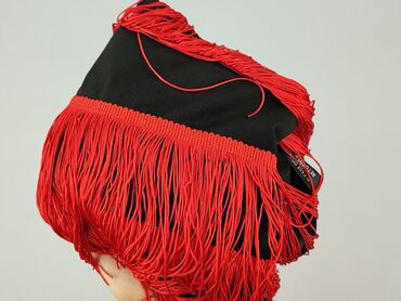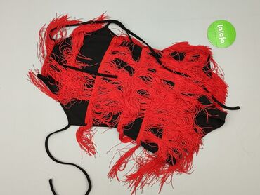 Bez rękawówTen damski top typu crop to modny element garderoby, idealny na ciepłe dni lub jako baza do stylizacji warstwowych. Charakteryzuje się czarnym materiałem z licznymi, długimi, czerwonymi frędzlami, które dodają mu dynamicznego i wyrazistego wyglądu. Top posiada wiązane ramiączka, co pozwala na regulację i dopasowanie do sylwetki. Krój typu crop eksponuje brzuch, nadając stylizacji lekkości. Frędzle są rozmieszczone poziomo, tworząc unikalny wzór i ruch przy każdym kroku. Doskonały wybór na imprezy, festiwale lub inne wydarzenia, gdzie chcesz wyróżnić się z tłumu.