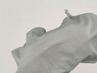 Damski top crop marki Stradivarius w oliwkowym kolorze, rozmiar L (EUR L). Charakteryzuje się okrągłym dekoltem i fasonem bez rękawów. Przednia część materiału jest ułożona asymetrycznie, tworząc u...