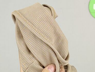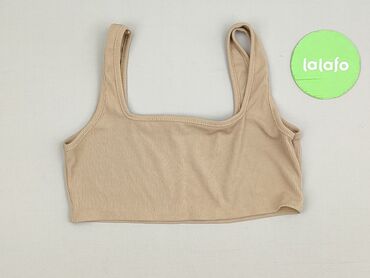 Damski top na ramiączkach w beżowym kolorze, wykonany z prążkowanego materiału. Posiada okrągły dekolt i jest w rozmiarze S. Idealny na co dzień, na lato lub jako element stylizacji warstwowej. Mat...