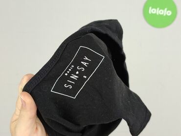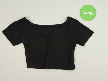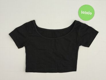 Czarna koszulka damska Sinsay - Rozmiar: S (widoczne na metce) - Kolor: czarny - Krój: klasyczny T‑shirt z krótkim rękawem i okrągłym dekoltem - Materiał: bawełna z dodatkiem elastanu (miękka, lek...