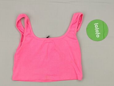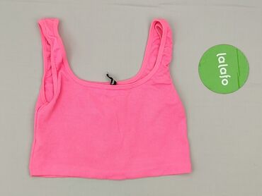Top damski Sinsay, rozmiar S - Krótki top na ramiączkach spaghetti - Intensywny różowy kolor z połyskiem - Materiał o fakturze „bouclé”/brokatowej, elastyczny - Dekolt w kształcie V z przodem rozc...Stan: