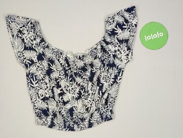 Bluzka damska H&M - Rozmiar: XS (EUR/US/CA XS, 160/80A) - Skład: 100% wiskoza - Kolor: granatowy - Wzór: drobne jasne kwiatki na całej powierzchni - Krój: lekko taliowana, delikatnie marszczona po...Krótki top damski H&M Divided w kolorze granatowo-białym, ozdobiony wzorem liściastym. Posiada krótki rękaw i dekolt w kształcie litery V, z marszczeniami u dołu dla lepszego dopasowania. Wykonany z miękkiej, elastycznej tkaniny, zapewniającej komfort noszenia. Idealny do letnich stylizacji, dobrze komponuje się zarówno ze spódnicami, jak i spodniami z wysokim stanem. Jest to uniwersalny element garderoby, który pasuje na wiele okazji.