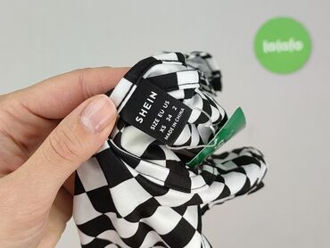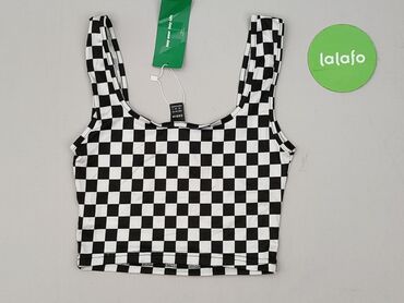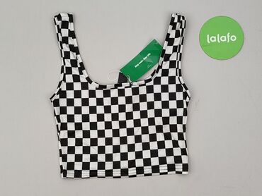 Top damski SHEIN, krótki/cropped, bez rękawów. - Kolor: biały z pomarańczowym nadrukiem w formie kolażu prostokątów - Krój: dopasowany, krótki top z okrągłym dekoltem - Materiał: 95% poliester, 5%...