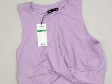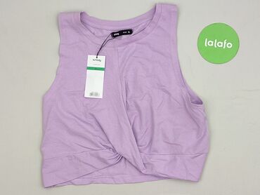 Top crop SINSAY, rozmiar S - Typ: krótki top/crop top bez rękawów, wycięte pachy - Krój: dopasowany, prążkowana dzianina - Kolor: jasny liliowy (pastelowy fiolet) - Materiał: elastyczna, miękka dz...