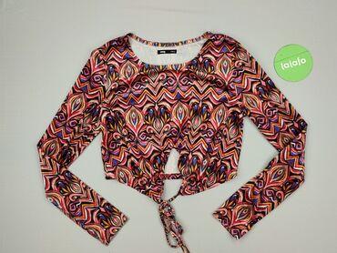 Bluzka damska Sinsay - Model: krótki top z krótkim rękawem - Rozmiar z metki: M - Fason: lekko dopasowany, długość do talii - Dekolt: okrągły - Wzór: geometryczny, gęsty print w odcieniach czerni,...