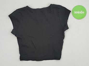 Czarny krótki top SHEIN dla kobiet - Model: crop top z półokrągłym, szerokim wycięciem na przodzie, krótki rękaw, okrągły dekolt - Rozmiar z metki: S (EU 36 / US 4) - Materiał: 95% poliester, 5% e...