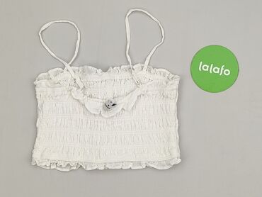 Biała bluzka/crop top z falbankami – CLOCKHOUSE, rozmiar 36 - Kolor: śnieżnobiały - Krój: krótki top bez rękawów, głęboki dekolt V z przodu, odsłonięte ramiona - Detale: ozdobne falbanki z haftem ...