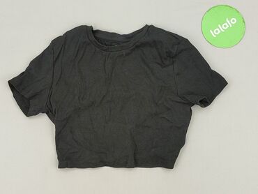 Czarna bluzka damska Sinsay, rozmiar M. - Krój: krótka koszulka typu crop top - Dekolt: zaokrąglony z ozdobnymi krzyżującymi się paseczkami z przodu - Rękaw: krótki - Dół: wiązanie na supeł z przo...