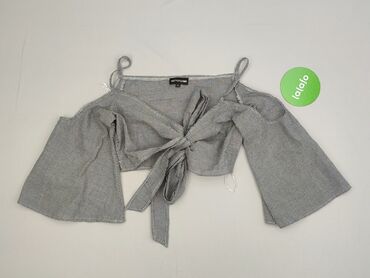 Top PrettyLittleThing – złoty, plisowany, z długim rękawem - Krój: krótki crop top z dekoltem typu hiszpanka (odsłaniający ramiona) - Przód z marszczeniem i regulacją na troczki – możliwość dopaso...