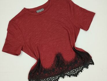 Bluzka damska Primark - Model: krótka bluzka/crop top z krótkim, opadającym rękawem - Kolor: ceglasty (rdzawo‑czerwony) - Faktura: drobna, wafelkowa dzianina - Dekolt: okrągły - Rozmiar z metki: S...