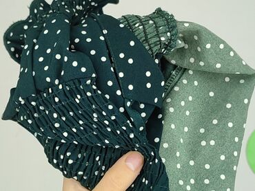 Bluzka SHEIN w groszki - Marka: SHEIN - Rozmiar z metki: M (EU 38, US 6) - Materiał: 100% poliester - Kolor: butelkowa zieleń z białymi kropkami - Krój: kobiecy, lekko taliowany - Dekolt: V z falb...