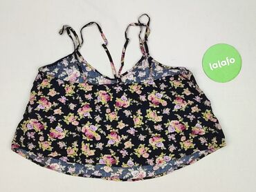Top damski Bik Bok – rozmiar L - Krój: krótki crop top na cienkich ramiączkach, głęboki dekolt w kształcie V z przodu i z tyłu, lekko zaokrąglony dół. - Wzór: biały w botaniczny print – rysunkowe ...