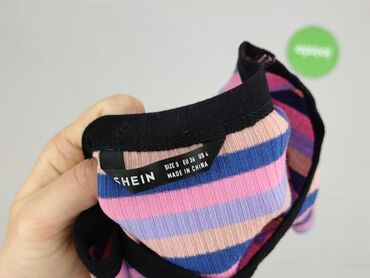 Top crop w paski SHEIN - Fason: bez rękawów, cropped, okrągły dekolt, dopasowany - Wzór: wielokolorowe, poziome paski (odcienie rdza/brąz, zieleń, żółty, fiolet, biel) - Materiał: prążkowana dzian...