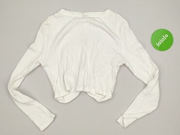 Długi rękawBiały, krótki top damski marki Shein, wykonany z prążkowanego materiału. Charakteryzuje się okrągłym dekoltem i długimi rękawami. Z przodu posiada ozdobne wiązanie, które dodaje mu unikalnego wyglądu. Idealny do casualowych stylizacji.