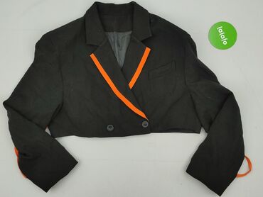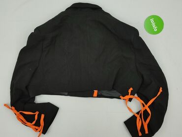 Krótki damski żakiet Marks & Spencer - Model: krótki żakiet z krótkim rękawem - Wzór: drobna krata (czarno‑biała z subtelnymi akcentami) - Kołnierz z klapami, zapięcie wiązane w pasie przez metalo...