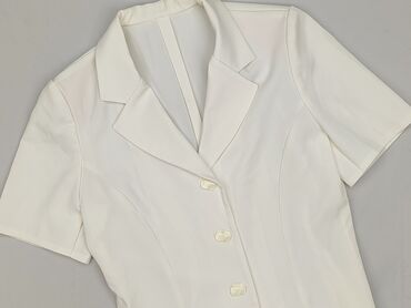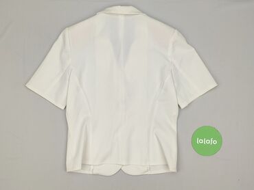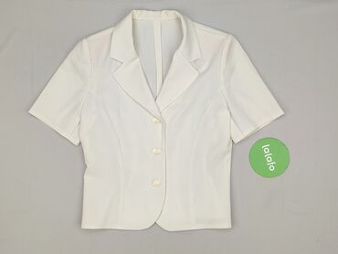 Krótki żakiet damski w kolorze ecru/kremowym - Marka: Collection (na metce) - Rozmiar z metki: 46 - Krój: krótki, do talii - Kołnierz: szeroki, wywinięty szalowy - Rękawy: 3/4 z mankietami - Zapię...