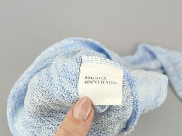 Ażurowy sweter damski – jasny błękit - Klasyczny, lekko luźny krój z długim rękawem - Delikatny ażurowy splot w geometryczne „okienka” na całej powierzchni - Okrągły dekolt - Ściągacze przy mankie...Stan: