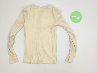 Bluzka damska Sinsay, rozmiar S. - Krój: klasyczny, z długim rękawem i okrągłym dekoltem. - Wzór: poziome pasy w kolorze beżowym i białym. - Materiał: miękka, elastyczna dzianina bawełniana z domi...