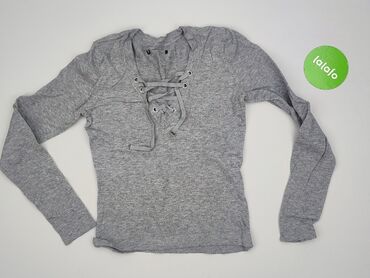 Szary sweter/bluzka damska H&M, rozmiar S (36). - Krój dopasowany, długie rękawy. - Dekolt w kształcie litery V z czarną, delikatną koronką – elegancki akcent. - Dzianina melanżowa w odcienia...
