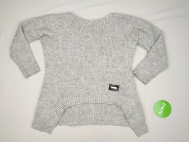 Szary sweter dzianinowy damski - Kolor: jasny szary - Krój: luźny, oversize z obniżoną linią ramion - Rękawy: 3/4, ażurowe (duże oczka) z elastycznymi ściągaczami - Przód: gładki, drobny splot - T...Stan: