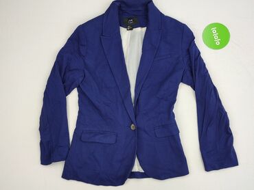 Elegancki damski blezer w kolorze niebieskim. Posiada klapy, długie rękawy i pojedynczy guzik do zapięcia z przodu, co nadaje mu klasyczny wygląd. Z przodu znajdują się dwie praktyczne kieszenie. P...Stan: