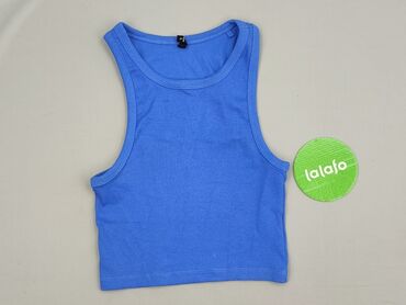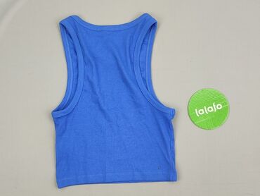 Top crop Sinsay – rozmiar S - Kolor: intensywny kobalt/niebieski - Krój: sportowy crop top z głębszym dekoltem V i wyciętymi plecami typu racerback - Materiał: prążkowana dzianina 95% bawełna, 5% ...