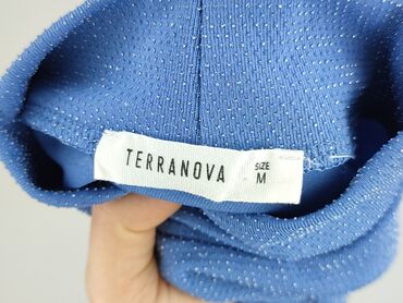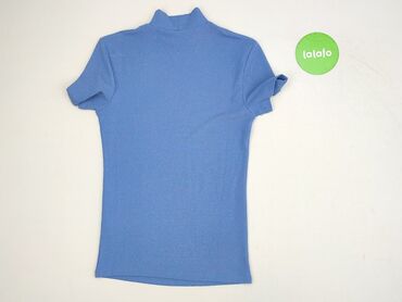 InnyNiebieski top damski marki Terranova, wykonany z prążkowanego materiału z krótkim rękawem. Posiada golf i delikatne, błyszczące drobinki, które dodają mu uroku. Idealny do codziennych stylizacji, zapewnia komfort i modny wygląd. Rozmiar M.