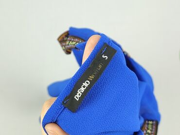 Bluzka damska SinSay, rozmiar S. - Krój: krótki top, dopasowany, z krótkim rękawem - Materiał: cienka, elastyczna siateczka/mesh (lekko prześwitująca) - Wzór: niebieskie tło w stylu tie-dye z biał...