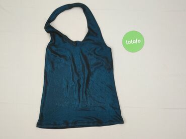 Bez rękawówTop damski w odcieniu intensywnego błękitu, z efektem mieniącej się tkaniny. Charakteryzuje się krojem halter, który wiąże się lub zapina na szyi, eksponując ramiona i plecy. Materiał sprawia wrażenie lekkiego i zwiewnego, idealnego na ciepłe dni lub jako element stylizacji wieczorowych. Dzięki elastycznej tkaninie, top dobrze dopasowuje się do sylwetki, zapewniając komfort noszenia. Klasyczny dekolt w kształcie litery V dodaje elegancji, a prosty dół sprawia, że top jest uniwersalny i łatwy do połączenia z różnymi elementami garderoby, takimi jak spódnice czy spodnie.