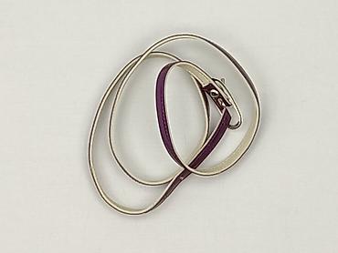 Fioletowy pasek damski z połyskiem, wykonany w 100% z materiału syntetycznego (napis: “100% SYNTHETIQUE”). Model o wąskim kroju, zakończony zwężaną końcówką. Metalowa klamra w kolorze srebrnym umoż...