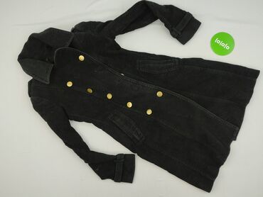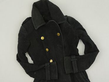 Czarny płaszcz damski marki Topshop, dwurzędowy, z szerokim kołnierzem i klapami. Płaszcz ma długie rękawy z guzikami na mankietach oraz pagony na ramionach. Wykonany z mieszanki materiałów, w tym ...