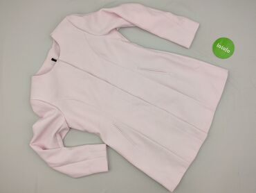 Różowy płaszcz damski w stylu tweedowym - Krój: klasyczny, lekko dopasowany, długość do ok. połowy uda - Zapięcie: trzy duże, okrągłe guziki z przodu - Kołnierz: wykładany - Tkanina wierzchnia: ef...