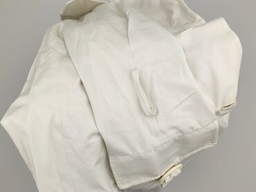 Płaszcz damski JIRGAO, rozmiar L - Krój: trencz/krótki płaszcz z paskiem w talii - Kolor: jasny beż/szampański z delikatnym, lekko satynowym połyskiem - Zapięcie: podwójny rząd dużych guzików z pr...