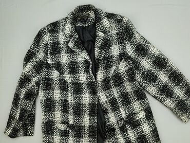 Damski płaszcz w kratę, wełniany – czarno-biały