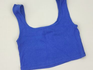 Top/bra sportowy H&M Divided - Kolor: intensywny kobaltowy/royal blue - Fason: krótki crop top, szerokie ramiączka, dekolt U z przodu i z tyłu - Materiał: elastyczna, żebrowana dzianina (prążkowan...