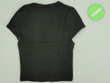 Czarny krótki top Bershka - Marka: Bershka - Rozmiar z metki: S (EUR/USA/MEX) - Kolor: czarny - Fason: krótki top cropped, dopasowany - Dekolt: okrągły - Rękaw: krótki - Materiał: elastyczna, prąż...