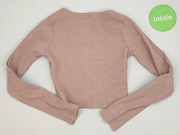 Damski crop top AMN, rozmiar M. - Kolor: pudrowy róż - Fason: dopasowany, krótki (crop), z długim rękawem raglanowym - Materiał: prążkowana dzianina (na metce: 94% poliakryl, 6% elastan) - Wykończ...