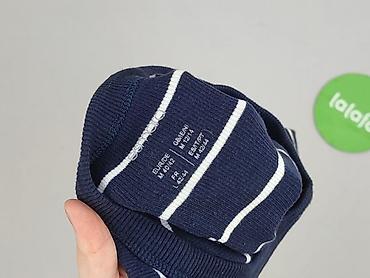 - Wzór: granatowe tło w białe, poziome paski