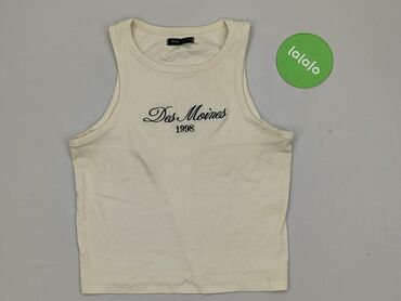 Top damski Sinsay - Model: krótki, dopasowany top bez rękawów - Dekolt: w kształcie litery V z przodu i z tyłu - Kolor: ecru/kremowy - Dzianina o drobnym splocie, elastyczna i miękka - Szeroki, pr...