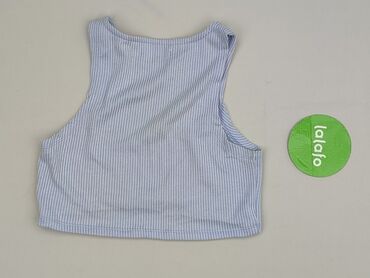 Top damski Sinsay - Model: krótki crop top - Kolor: intensywny kobalt/niebieski - Dekolt: głęboki w kształcie litery V - Tył: bokserka (racerback) - Materiał: prążkowana, elastyczna dzianina baweł...