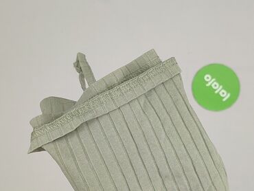 Top crop bez rękawów, prążkowany, w kolorze oliwkowej zieleni. - Krój: kopertowy przód z dekoltem w serek, szeroki pas u dołu, plecy zabudowane. - Materiał: dzianina pętelkowa/frotte z pionowymi p...