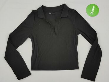 Czarny prążkowany top/bluzka Sinsay - Model: dopasowany top z długim rękawem - Krój: krótszy (crop), półokrągły dekolt, elastyczne prążkowane wykończenie - Ciekawy detal: półokrągłe wycięcie z tył...