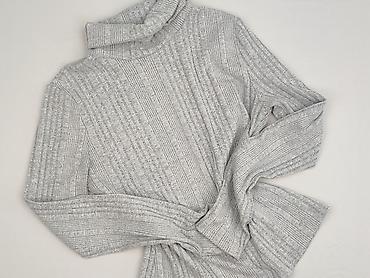 Damski golf prążkowany, szary melanż - Fason: dopasowany, elastyczny, podkreśla sylwetkę - Dekolt: golf/stójka - Rękaw: długi - Wzór/struktura: wyraźne pionowe prążki - Kolor: jasny szary melanż -...