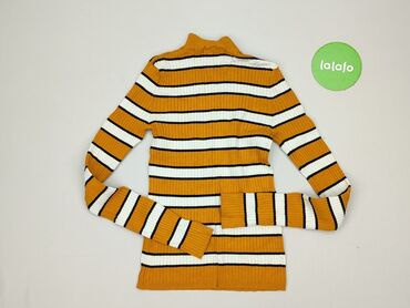 Golf prążkowany w paski - Krój: dopasowany, elastyczny prążkowany splot - Kołnierz: wysoki golf - Rękawy: długie - Długość: tunikowa/za biodra - Wzór: poziome pasy w kolorach musztardowym, białym ...