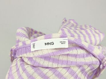 Fioletowy kardigan damski z długim rękawem, zapinany na guziki. Charakteryzuje się dekoltem w kształcie litery V i prążkowanymi mankietami oraz dołem, co zapewnia lepsze dopasowanie. Jest to używan...Sweter kardigan damski MNG (Mango)