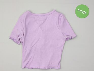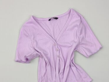 Fioletowa bluzka damska z krótkim rękawem marki Shein. Charakteryzuje się prążkowanym materiałem i dekoltem w kształcie litery V. Zapinana jest na guziki z przodu, co dodaje jej swobodnego charakte...