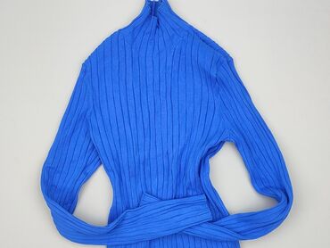 Sweter damski z golfem, błękitny - Fason: dłuższy, lekko dopasowany, dzianinowy - Kołnierz: obszerny golf z miękkiej, pętelkowej dzianiny (efekt frote) - Rękawy: długie, zakończone szerokimi manki...