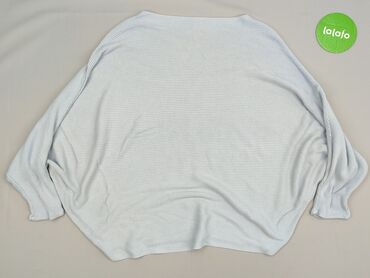 Luźny sweter/ponczo oversize w kolorze jasnego beżu. - Fason: bardzo szeroki, nietoperzowe rękawy 3/4 - Dekolt: w kształcie litery V - Materiał: miękka, cienka dzianina o drobnym splocie (przyjemn...