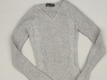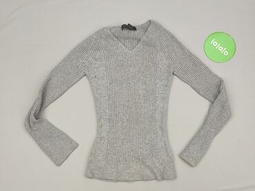 Sweter damski Primark - Rozmiar z metki: XS (EU 34/36, UK 6/8, USA 2/4) - Kolor: jasnoszary/melange - Fason: klasyczny sweter z dekoltem w serek (V-neck), długie rękawy, ściągacze przy mankietach ...