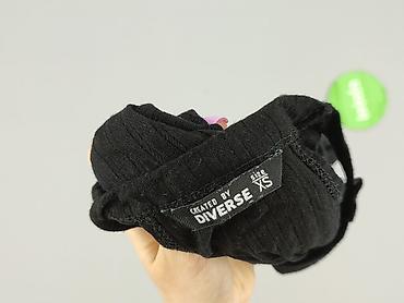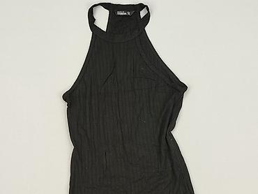 Czarny top damski XS - Fason: krótki, dopasowany, na ramiączkach wiązanych na kokardy - Dekolt: łódkowy - Tkanina: prążkowana, elastyczna - Skład: 95% poliester, 5% elastan (metka na zdjęciu) - Ko...